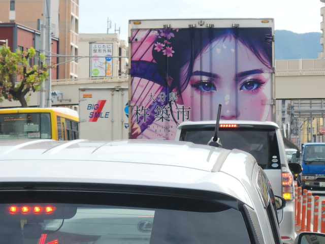 時間が無くて、ラムーのたこ焼き2パック さあ、久々、ALWAYSのバス乗るぞ〜 そういえば、午前中、小倉でずっと前を走ってた10tトラック セクシーだよな〜 たまに見る、杵築のトラック、デザインがイイ!!