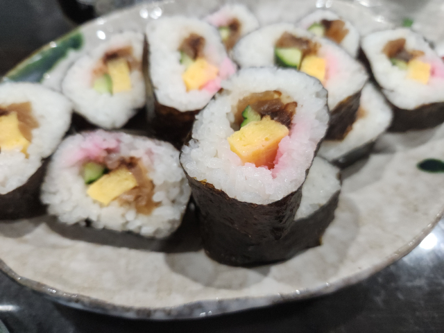 夕方、サンリブ行ったので巻き寿司を調達。。