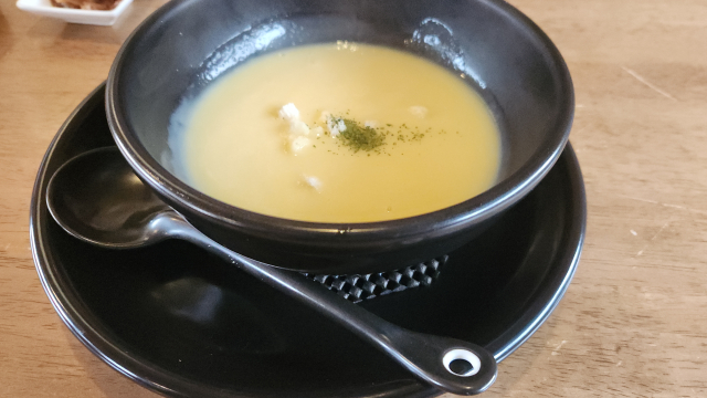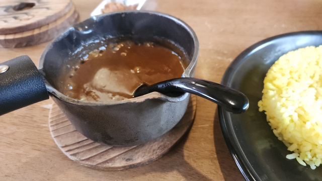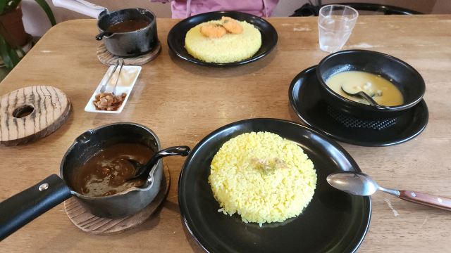 バスケットボール大会のお弁当納品で田川方面の道中に、せっかくならと、キートンにイン! 珍しく、カレー好きの妻も同上してきてたので丁度よかった。。 ここのスープおいしいんよ ラッキョもサービスされてくるのが地味にうれしい 地中海カレーを頼んでみた(以前から気にはなっていた) 貝柱の歯ごたえと、なんともいえない海鮮風味がプラスされておいしかった 妻はというと、辛口の [ I ] で注文したものの、もっと辛いほうが良かったとの事で店主さんと次回 [ Z ] でお約束 前回は [ F ] 備忘録としてココに記す そういえば、出口のドアのステッカーがシュ〜ル〜 自分で動かす 勝手に写真撮ってゴメンなさい!