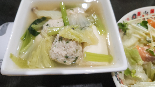 > 海鮮サラダとつくね鍋