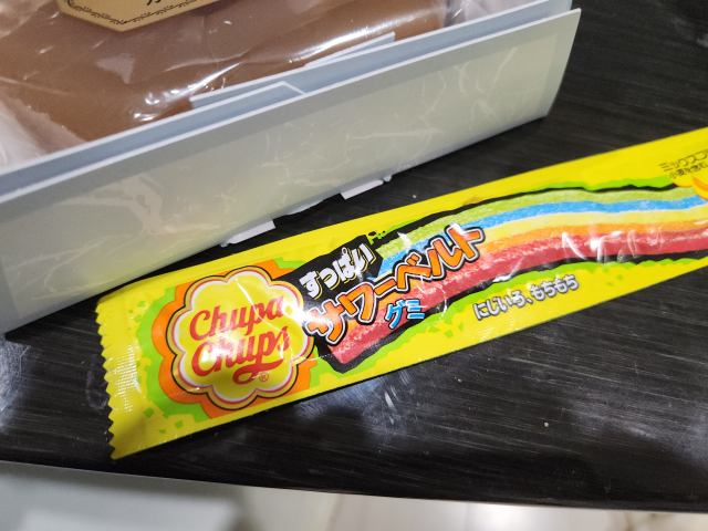 さすが、ChupaChups 見た感じはザラザラした砂糖菓子なのに、酸味で、マジウマ その後、羊羹も食べたけど