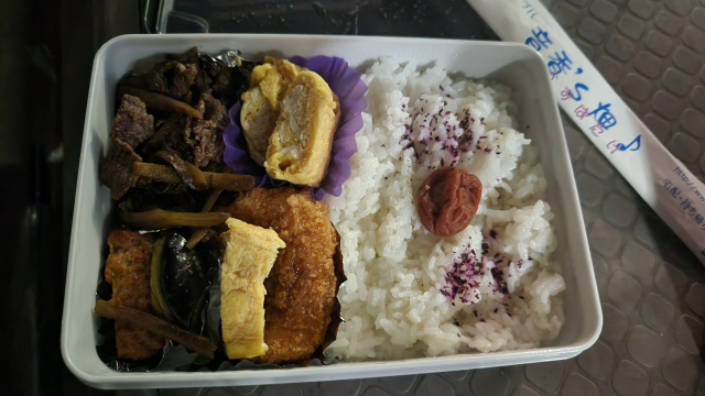バス内で弁当
