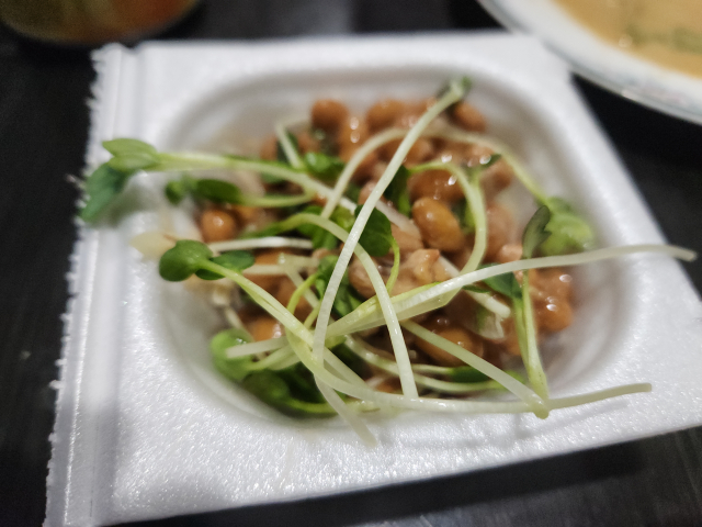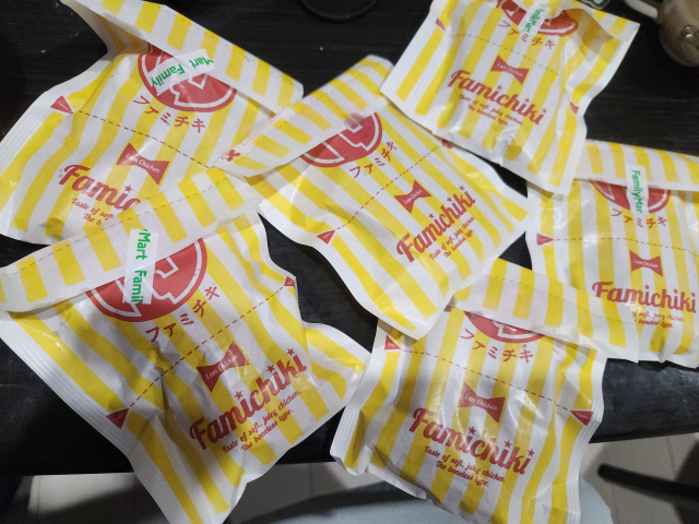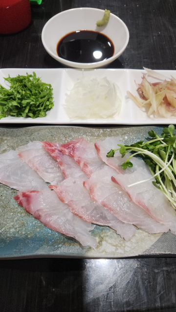 薬味たくさん用意して、コストコの鯛の刺身とカルパッチョ 余った薬味で納豆 娘がファミマのバイトから帰還 ファミチキ、からあげなどお土産に大量