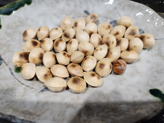 ・薬味たっぷりのカツオ(にんにく買い忘れた) ・タコ ・銀杏 ・親鳥 けっこう満足な晩酌 長女が東京旅行中で、家族3人で協力して、銀杏をペンチで