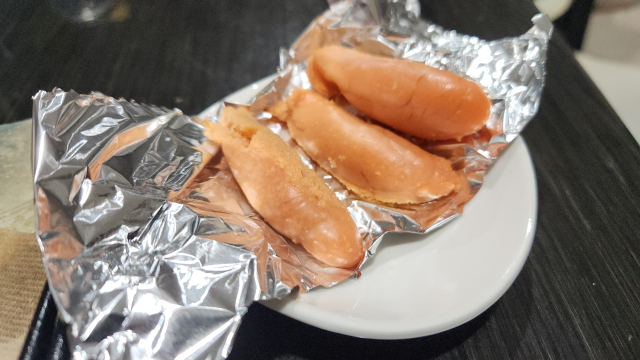 酔いながら見ても頭入ってない 明日、シラフで見直そう ドライ とりあえずニンニク味噌から 豚の梅シソ巻きをソース2種で 焼きタラコ パン ようかん シメの肉まん 本日は娘のパチ業の帰り待ってあげれた あ〜、明日は休みだ。うれしい。