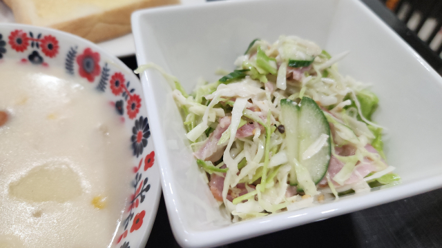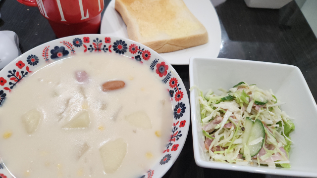 サラダとトースト添えクリームシチュー