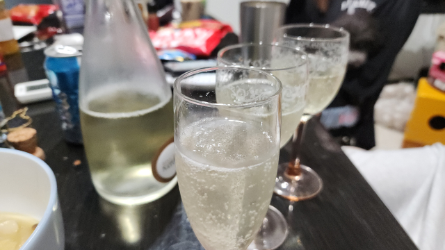 鶏鍋を、かぼすで絞って。。。 私の、誕生日に妻娘たちからもらったシャンパンを今日開けた。。。 うん、おいしかった